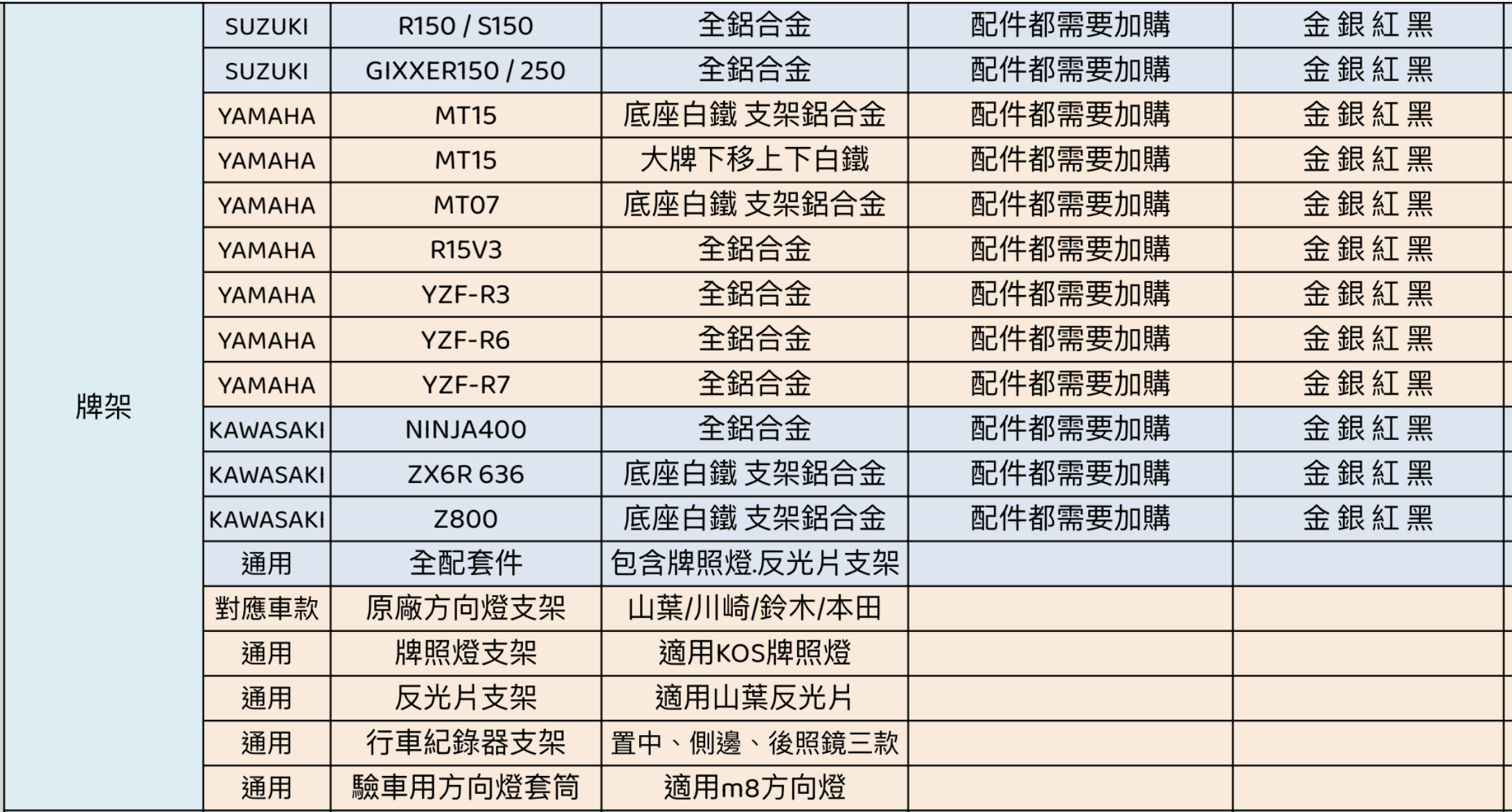 適用車款:GSX-R150 S150/GIXXER 150 250/MT15/MT07/R15V3/YZF-R3 R6 R7/NINJA 400/ZX6R 636/Z800